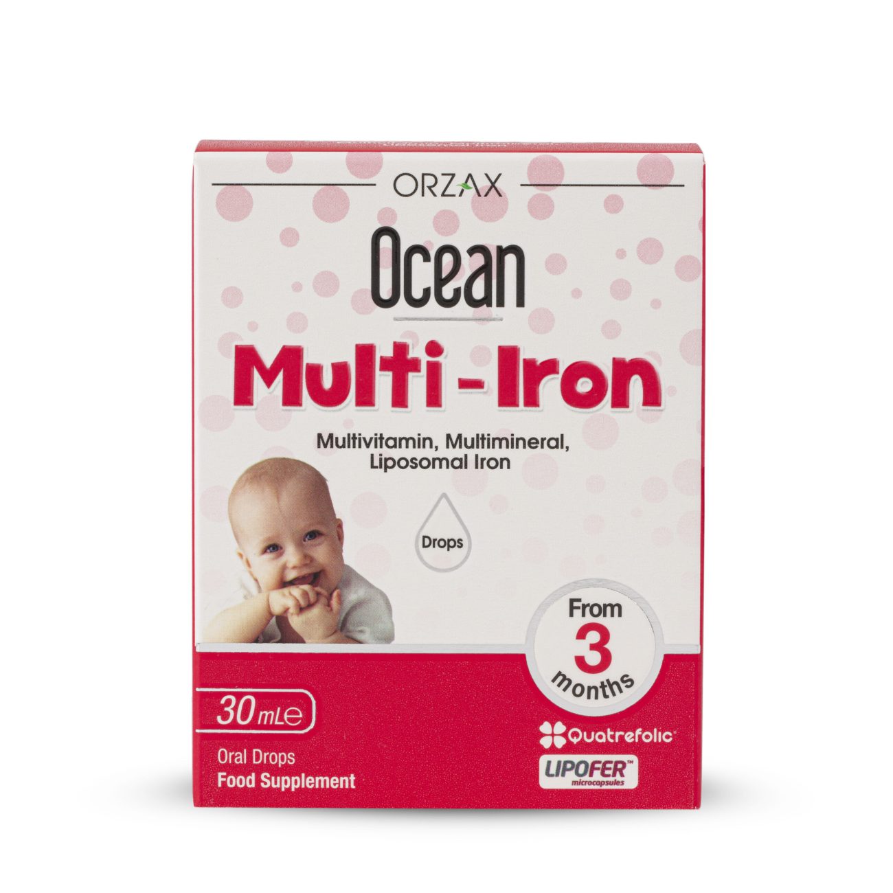 Multi iron chứa sắt Lipofer (sắt dạng bao vi nang giúp tăng khả năng hấp thu lên tới 5 lần so với sắt thông thường), Acid folic thế hệ thứ 4, Lysin, Kẽm cùng 11 vitamin khoáng chất quan trọng khác. Với sự đa dạng hóa thành phần, Ocean Multi Iron giúp tạo ra “tác dụng kép” vừa bổ sung sắt, folate vừa giúp trẻ ăn ngon miệng, gia tăng chuyển hóa, hấp thu tối đa dinh dưỡng.