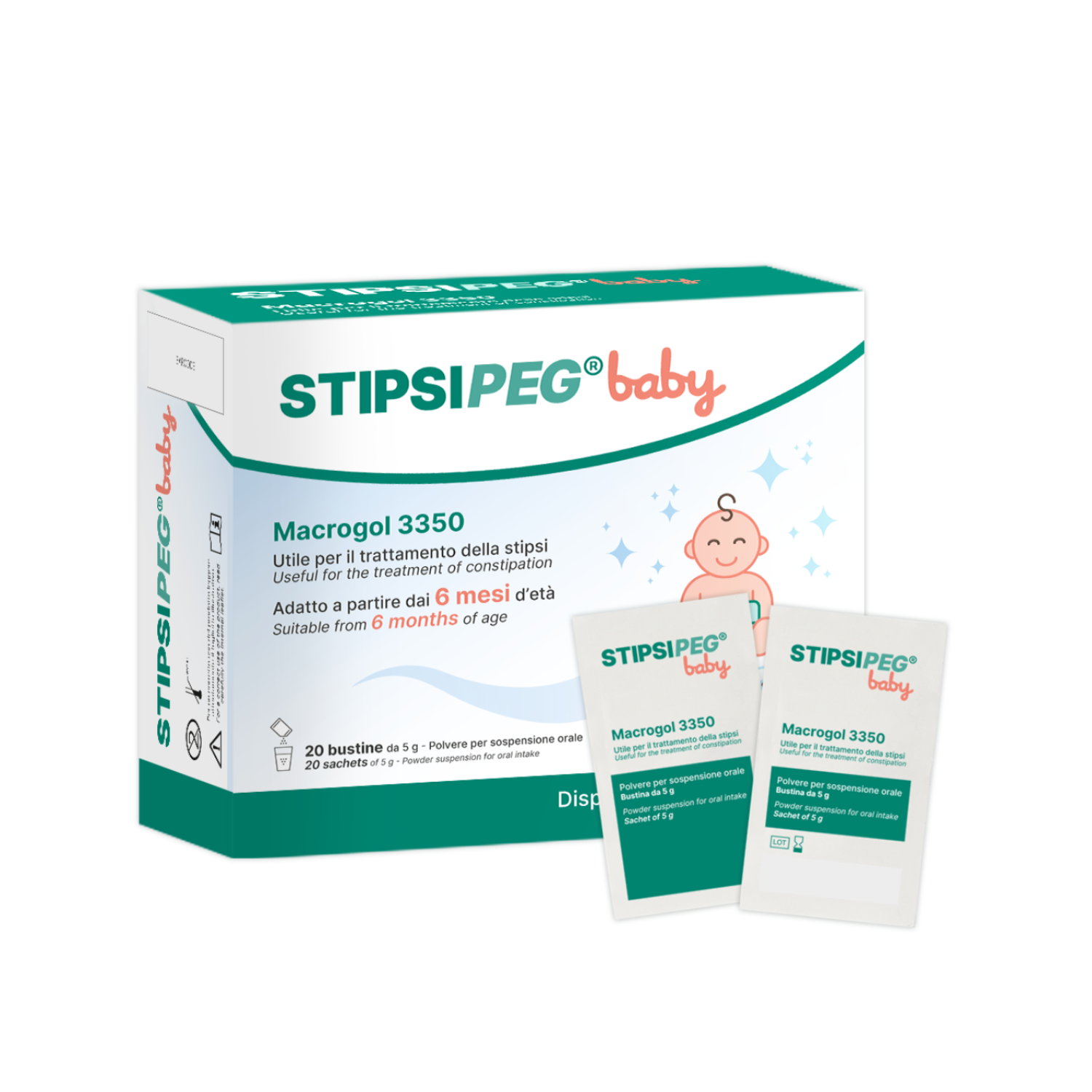 – Stipsipeg Baby Macrogol 3350 liên kết với các phân tử nước tăng lượng dịch trong lòng ruột, giúp làm mềm phân và cải thiện độ trơn, tăng thể tích khối phân.